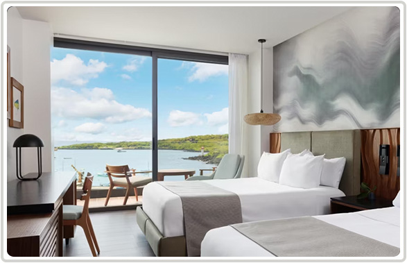 We invite you to cross a bridge to the extraordinary. To admire the immensity outside and experience the elegance within. To experience the importance of radical comfort and the wild allure of nature. Our rooms are modern, intimate, and harmonious spaces that blend the importance of rest with the wonderful adventure of visiting the Galápagos Islands. We have 35 open-view rooms, each with different features that will captivate you from the moment you arrive.