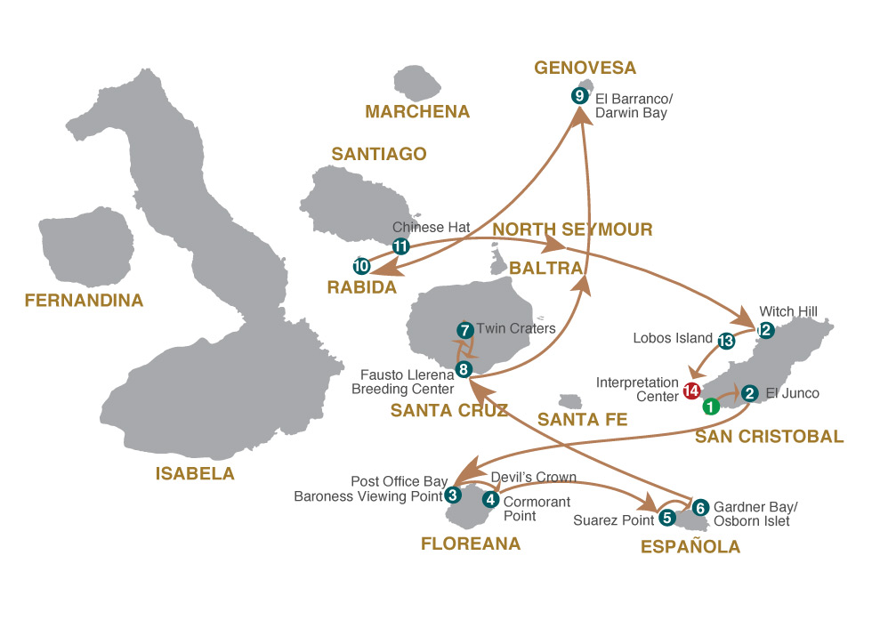 This excursion takes you to the spectacular Gardner Bay. After landing, you can walk across a lovely white-sand beach amongst a busy sea lion colony or dive into the water to swim with sea lion pups. You may also see curious mockingbirds on the beach.